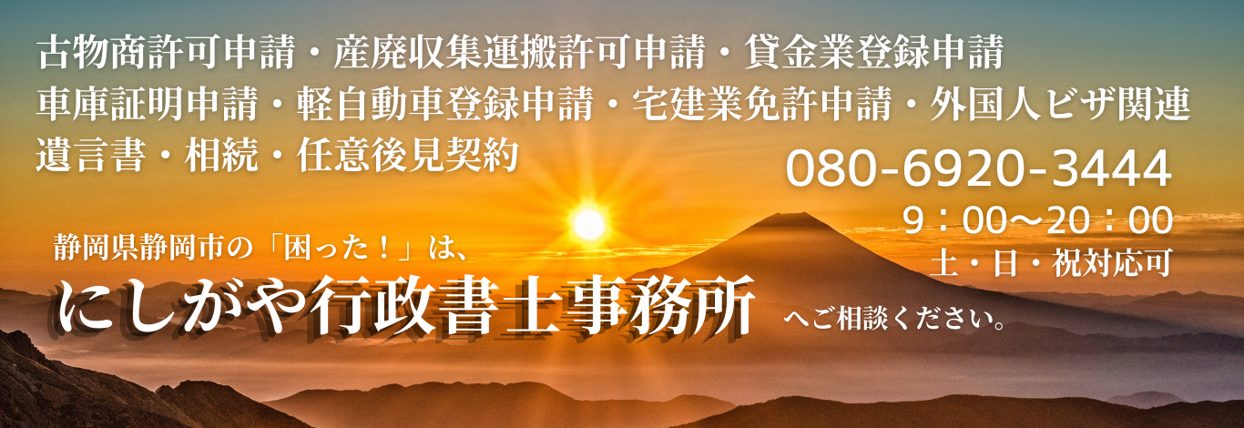 些細なコトでも気になる、聞いてみたい、困った、がございましたら、静岡市清水区のにしがや行政書士事務所にお尋ねください。